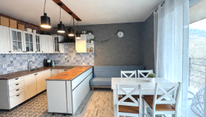 Dom má dve podlažia a celkovú úžitkovú plochu 197 m². Dispozične ponúka 6 izieb, 2 kúpeľne a dostatok priestoru pre viacčlennú rodinu aj prácu z domu. Súčasťou domu sú 2 balkóny, krb a strešná terasa s možnosťou nadstavby do budúcna. Dom sa nachádza na mierne svahovitom pozemku s rozlohou 1 173 m², ktorý poskytuje súkromie aj priestor na oddych. Na pozemku sa nachádza altánok a záhradná chatka, ideálne na relax či uskladnenie záhradného vybavenia.
