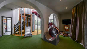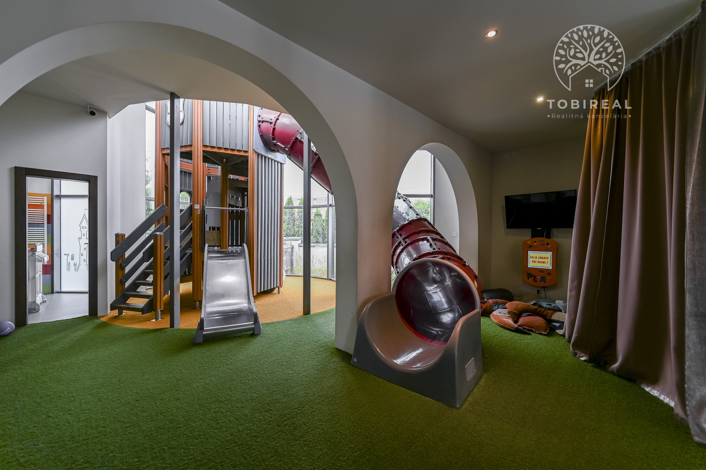 Súčasťou objektu je aj veľkorysý detský kútik s hracou vežou a šmýkačkou (výška približne 3 metre), žehliareň, dvojgaráž a viacero technických a skladovacích priestorov vrátane miestnosti s chladiacim boxom. K dispozícii sú tiež dve kancelárie, samostatné toalety pre reštauráciu, bar i personál a ďalšie priestory s výmerou cca 100 m² vhodné ako administratívne zázemie.