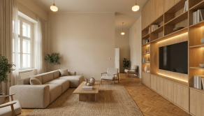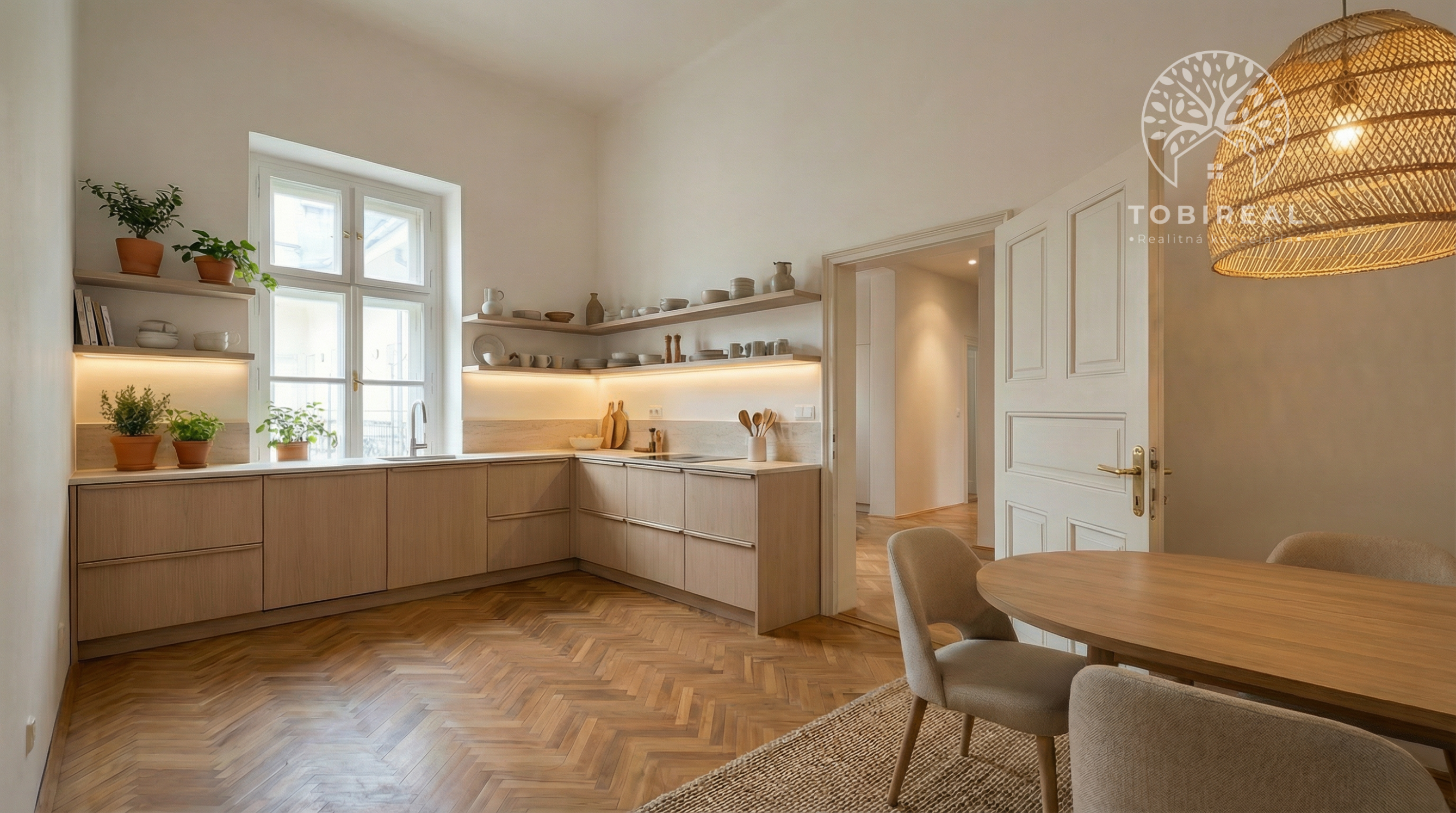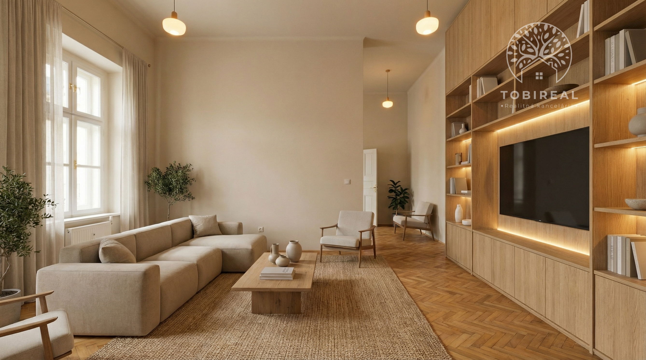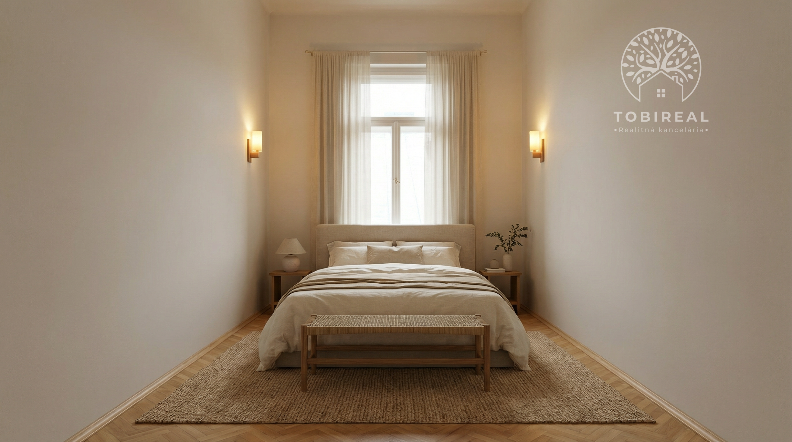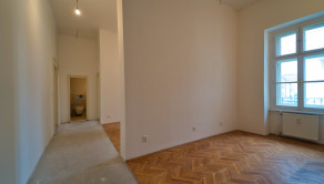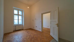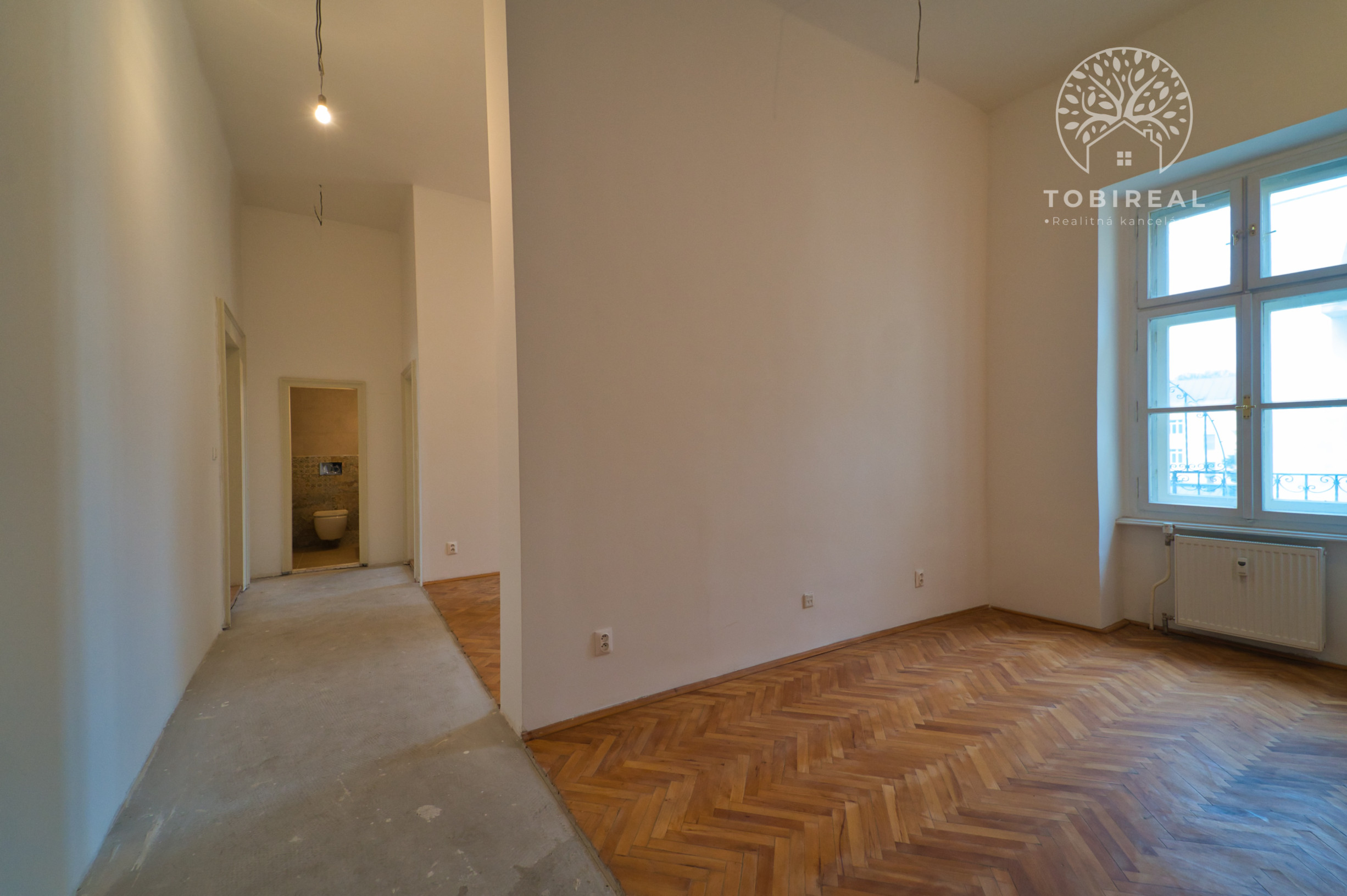 Tento priestranný byt s úžitkovou plochou 80 m² sa nachádza na 2. poschodí historickej budovy priamo v centre mesta. Je nezariadený, budúci majiteľ má teda ideálnu príležitosť prispôsobiť si interiér podľa vlastných predstáv. Dispozične pozostáva z troch samostatných izieb, kuchyne, kúpeľne s toaletou a samostatnej toalety.