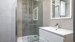 Byt má celkovú výmeru 67,14 m², z čoho pivnica tvorí 4,64 m². Okná sú orientované na sever. Dispozícia pozostáva z obývacej izby prepojenej s kuchyňou, dvoch samostatných spální a kúpeľne so sprchovým kútom a toaletou. Byt disponuje klimatizáciou a vykurovanie je zabezpečené vlastným kotlom. Byt sa predáva zariadený.