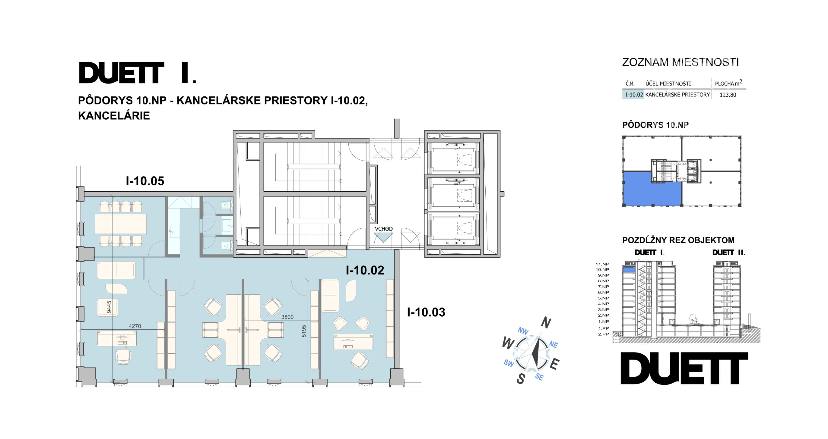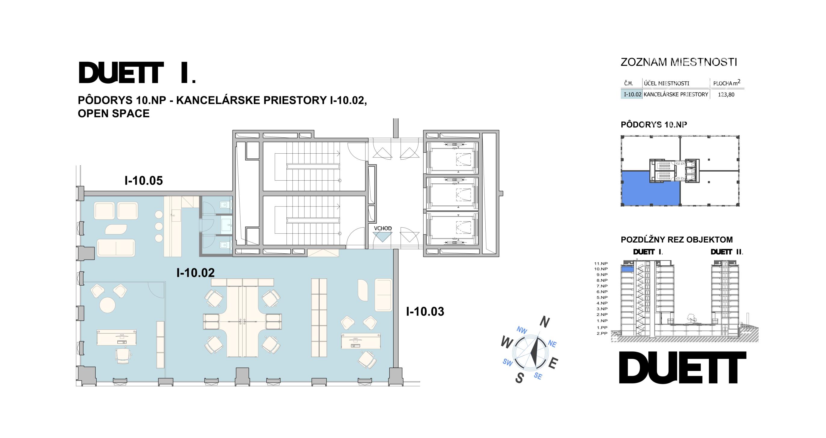 Priestor sa nachádza na 10. poschodí s krásnymi výhľadmi na mesto a orientáciou na juh a západ.