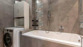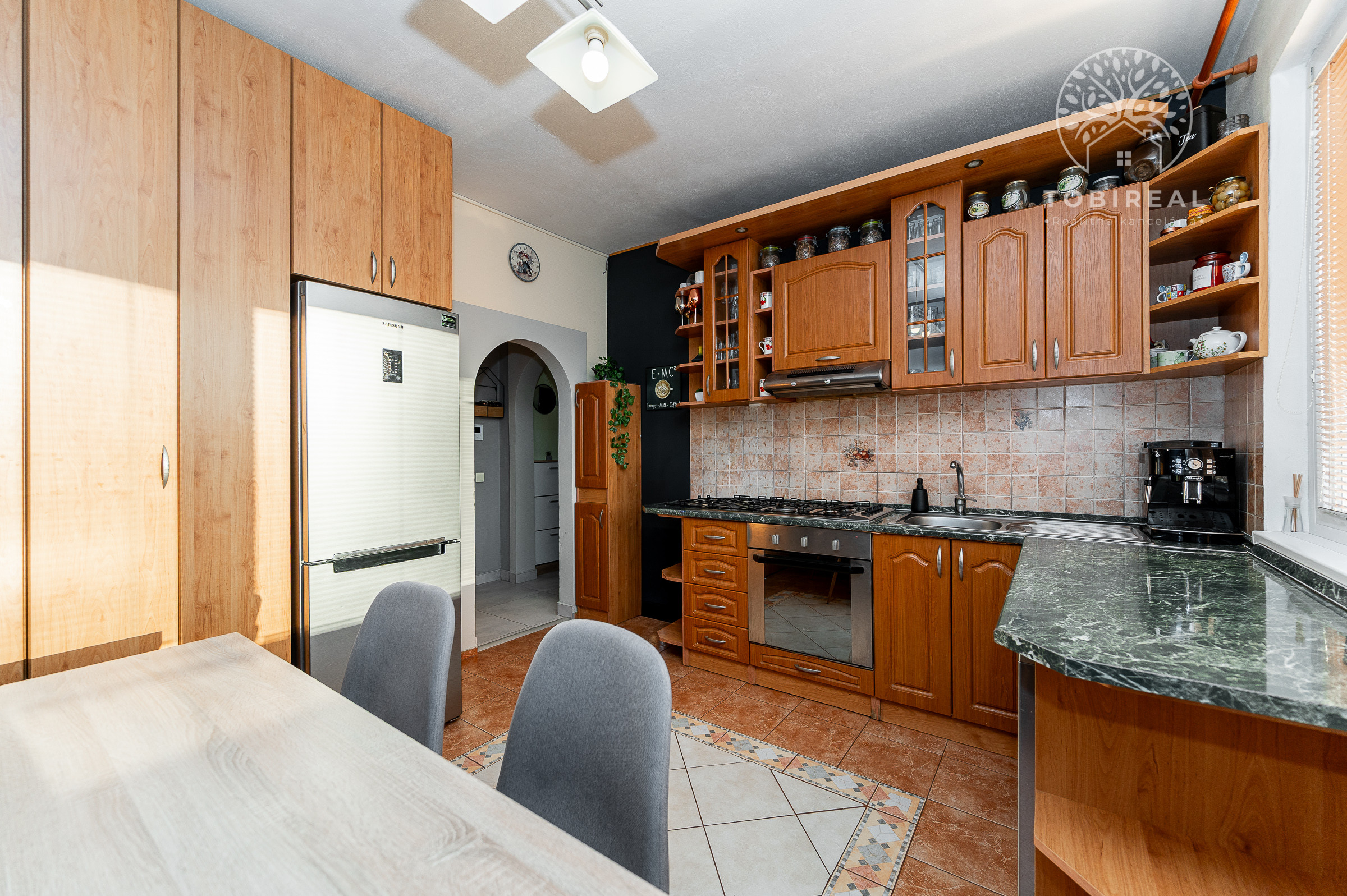 Kuchyňa je plne vybavená spotrebičmi: umývačka riadu, chladnička, mraznička, digestor, plynový sporák, elektrická rúra.