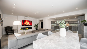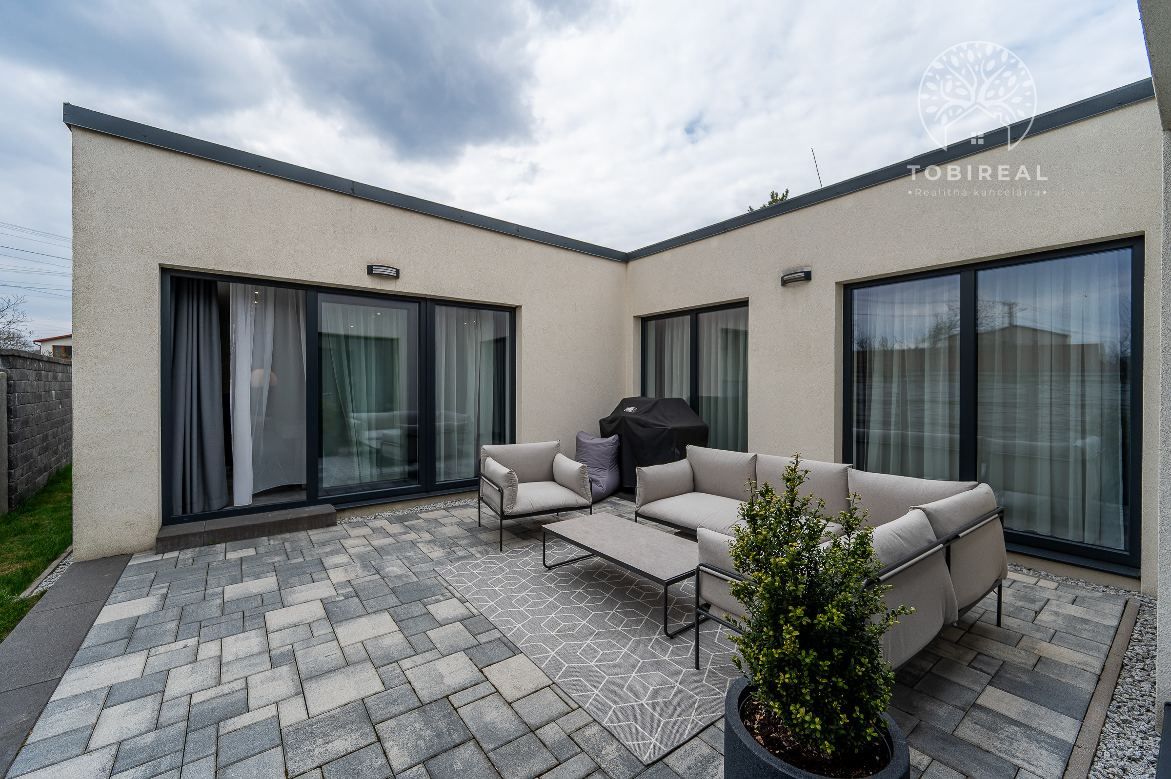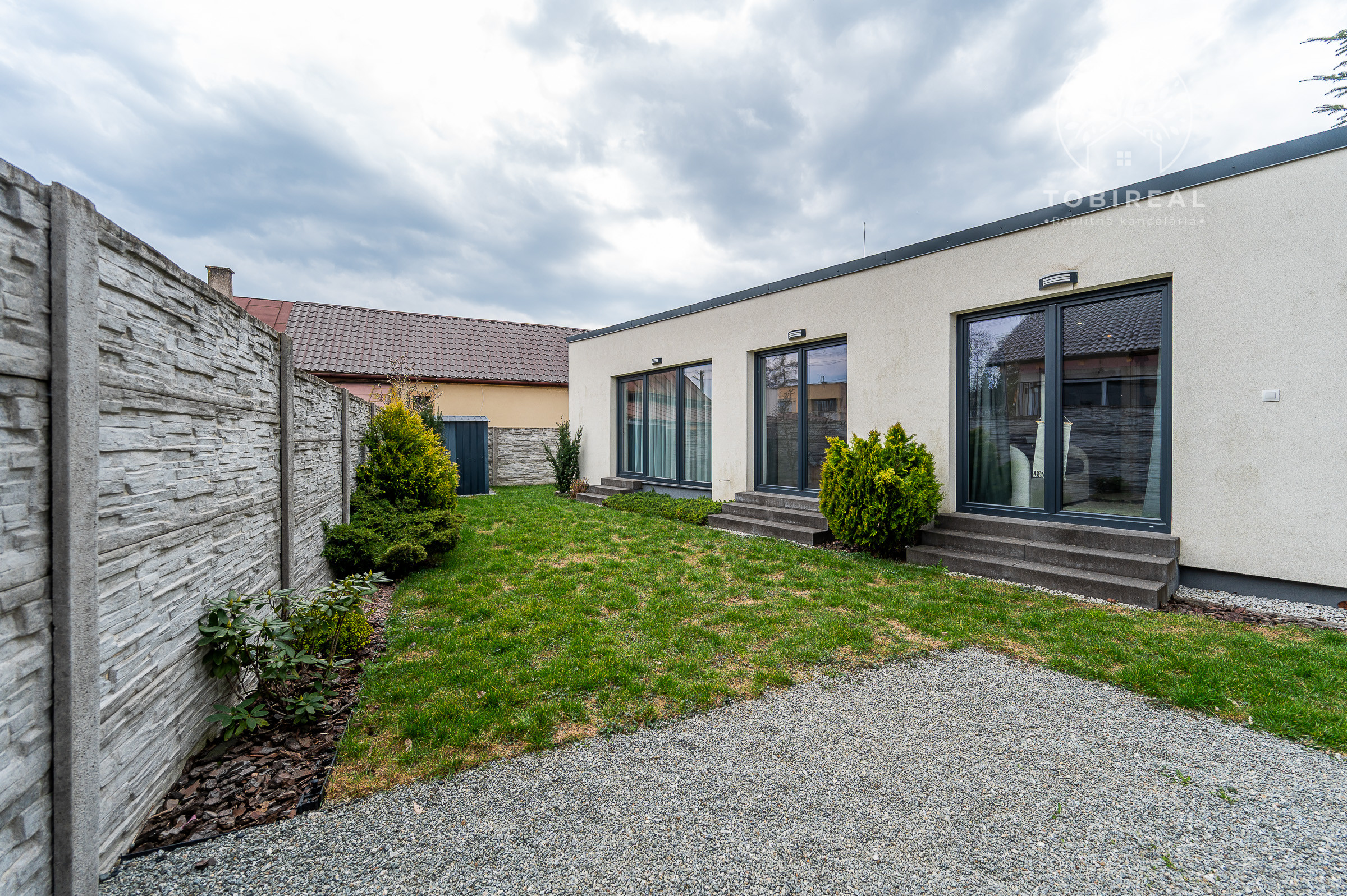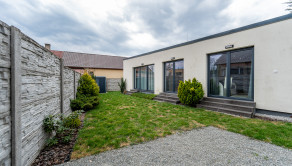 Tento jednopodlažný rodinný dom disponuje zastavanou plochou 188 m² a nachádza sa na rovinatom pozemku o rozlohe 322 m². Dispozíciu domu tvorí vstupné zádverie, obývacia izba spojená s kuchyňou a jedálňou, chodba, spálňa s vlastnou kúpelňou so sprchovacím kútom, 2 ďalšie izby, kúpelňa s vaňou a toaletou, samostatná toaleta, šatník, špajza a technická miestnosť. Súčasťou domu je priestranná terasa o výmere 25 m² a k dispozícii sú 3 parkovacie miesta. Dom sa predáva zariadený, s množstvom vstavaných skríň a praktickým riešením úložných priestorov.
