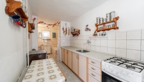 Dispozícia domu pozostáva z troch izieb, kuchyne, kúpeľne s vaňou a samostatnej toalety. Zastavaná plocha domu je 705 m² a záhrada má výmeru 123 m². (Uvedené výmery vychádzajú z údajov evidovaných na katastri obce.) Dom je vykurovaný plynovým kotlom a krbom. K nehnuteľnosti prislúcha prístavba, ktorá slúži ako dreváreň a garáž. Výhodou je aj prístup na pozemok z dvoch strán. Súčasťou predaja je aj pozemok oproti domu cez cestu, ktorý je možné využiť ako záhradku na pestovanie alebo rekreačné účely. Nehnuteľnosť má podkrovie a strecha prešla rekonštrukciou.