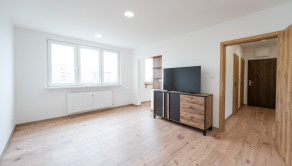 Tento kompletne zrekonštruovaný byt s rozlohou 65 m² sa nachádza na 5. poschodí bytového domu s výťahom. Byt je čiastočne zariadený a disponuje loggiou. Orientácia bytu je na východ a západ, čo zabezpečuje dostatok prirodzeného svetla počas celého dňa. Dispozične pozostáva zo vstupnej chodby, obývacej izby so vstupom na loggiu, kuchyne, dvoch samostatných spální, kúpeľne so sprchovacím kútom a samostatnej toalety.