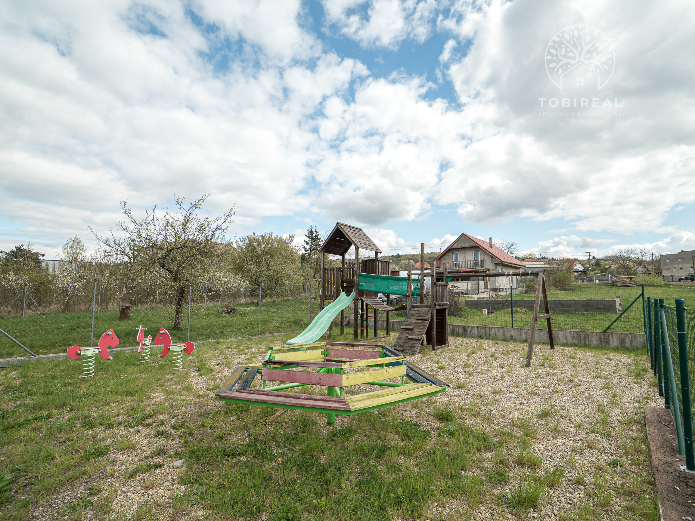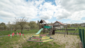 Exteriér nehnuteľnosti ponúka množstvo možností na oddych aj zábavu. K dispozícii je krytý altánok s grilom, detské ihrisko, závlahový systém a dostatok parkovacích miest priamo vo dvore. Celý areál je oplotený, čím poskytuje dostatok súkromia.