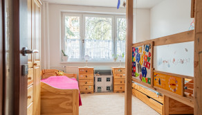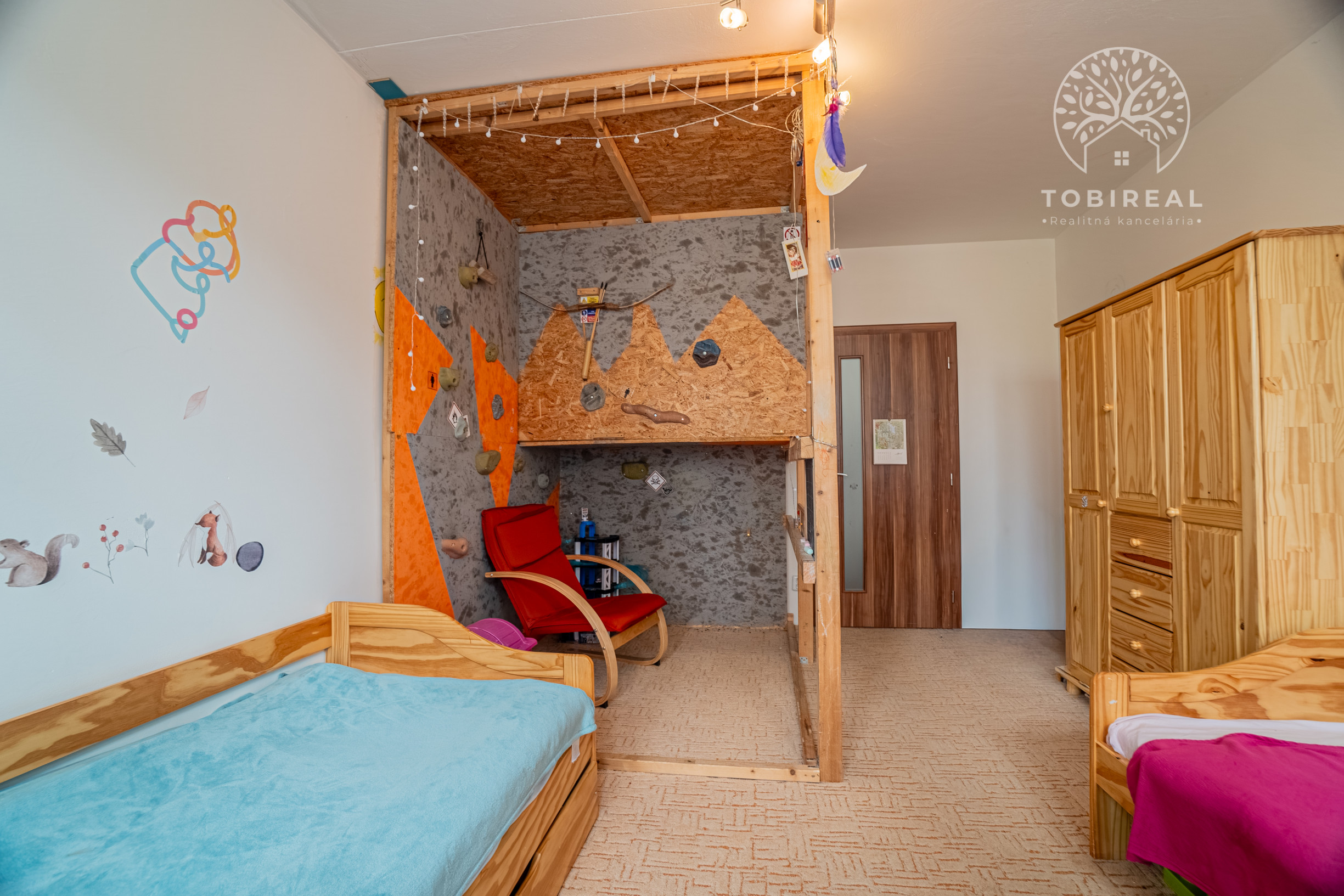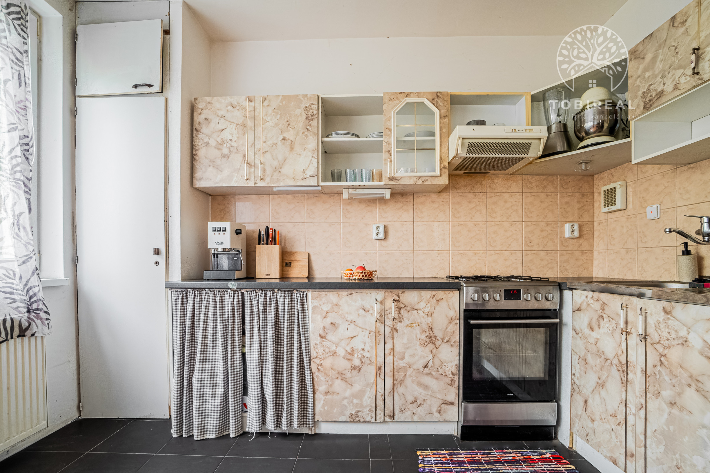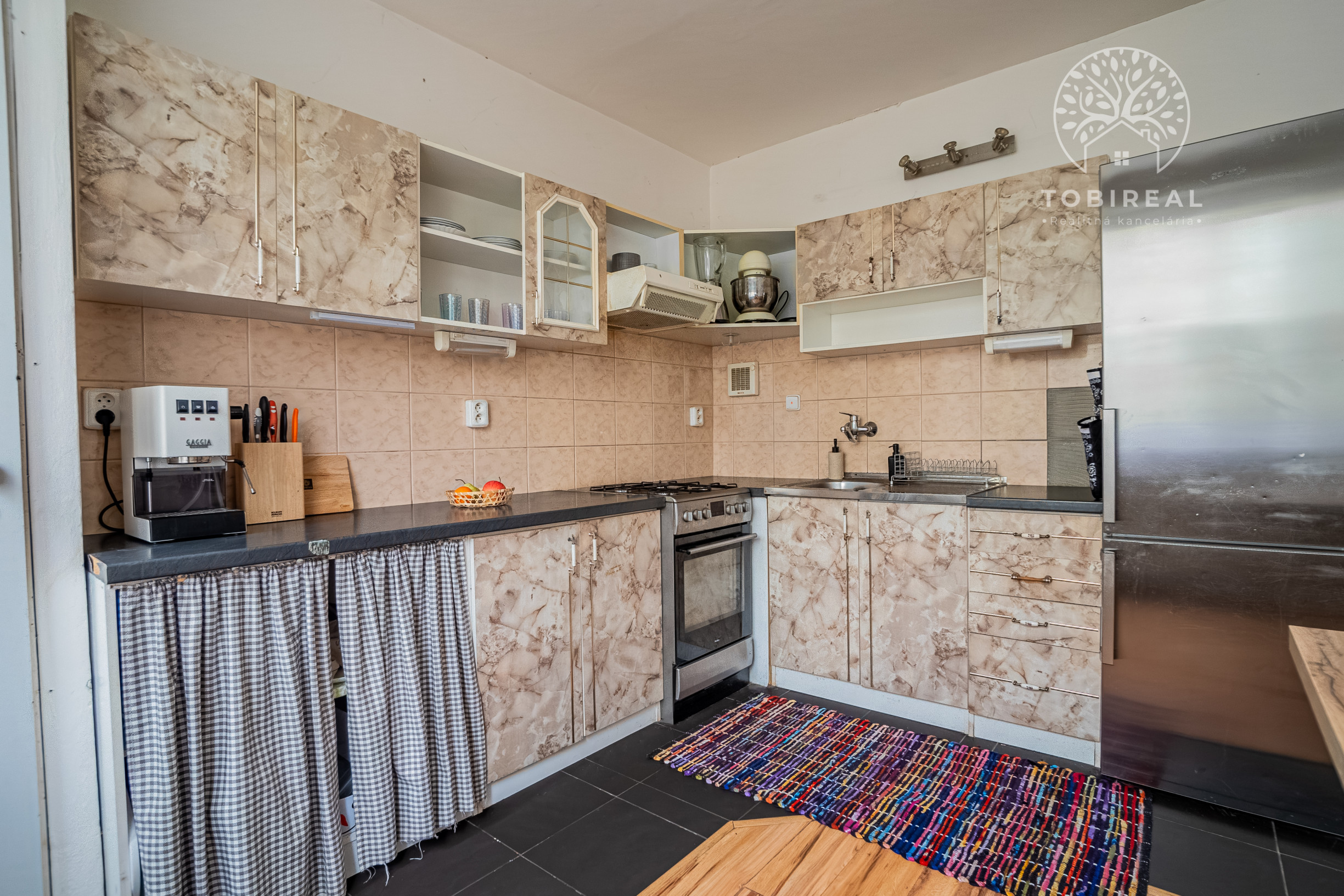 Byt sa nachádza na 1. poschodí bytového domu s výťahom. Celková rozloha bytu je 80 m² a k bytu prislúcha aj pivnica a dve loggie. Nehnuteľnosť prešla staršou rekonštrukciou a predáva sa čiastočne zariadený. Dispozícia bytu pozostáva zo vstupnej chodby, obývacej izby, kuchyne, spálne, detskej izby, kúpeľne s vaňou a samostatnej toalety. Kuchyňa je plne vybavená spotrebičmi: chladnička, mraznička, digestor, sporák a elektrická rúra.