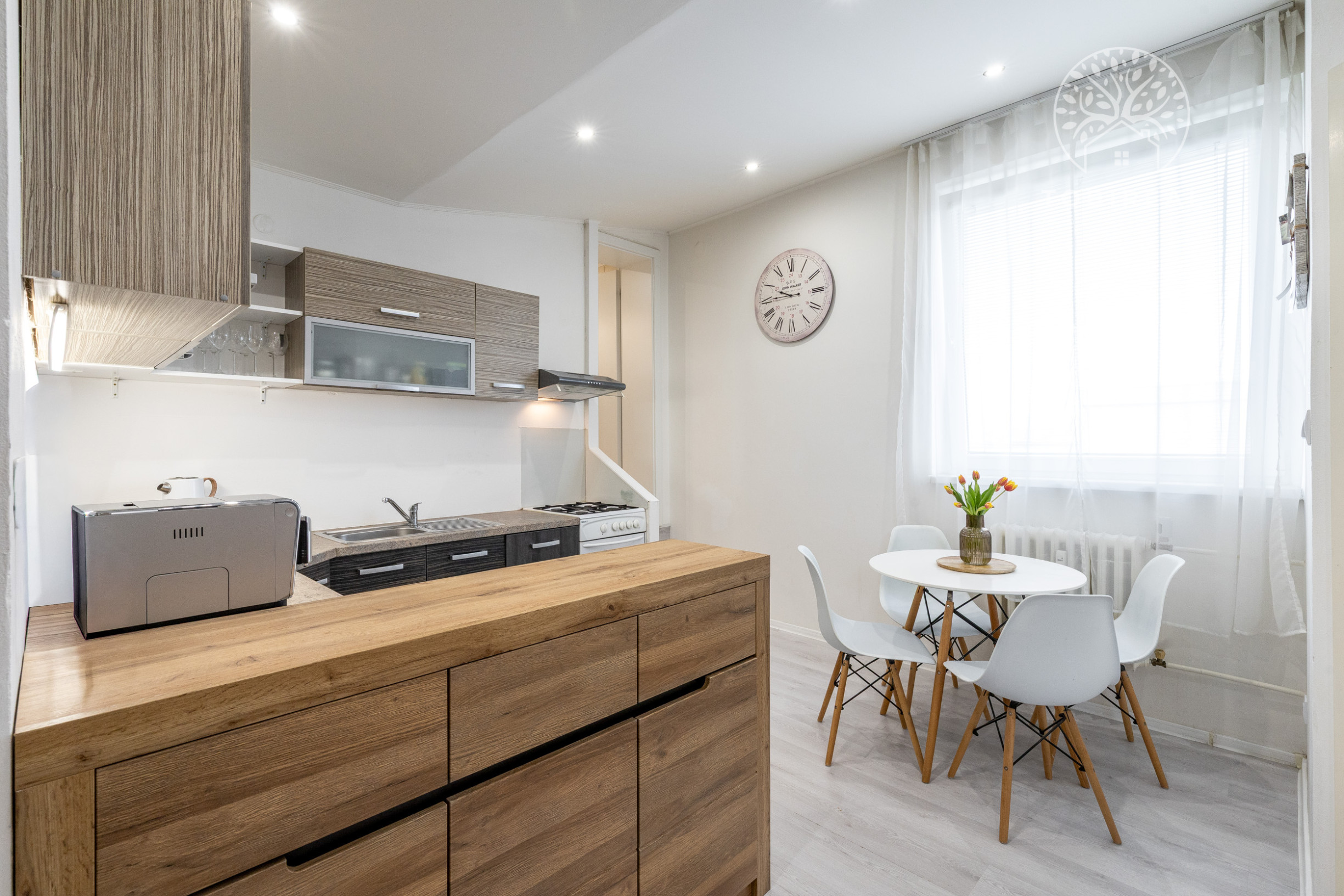 Byt sa nachádza na 6. poschodí v zateplenom tehlovom bytovom dome s výťahom. Má výmeru 52 m² a prešiel rekonštrukciou spojenou so zmenou dispozície, ktorá zabezpečuje efektívne využitie priestoru. V byte sú vysoké stropy, čo umocňuje pocit vzdušnosti. Orientácia bytu je na východ a západ, čo zabezpečuje dostatok denného svetla počas celého dňa. K bytu prislúcha aj pivnica. Byt sa predáva zariadený a pripravený na okamžité bývanie. Výhodou sú odhlučnené steny so susediacim bytom, čo zvyšuje komfort bývania.