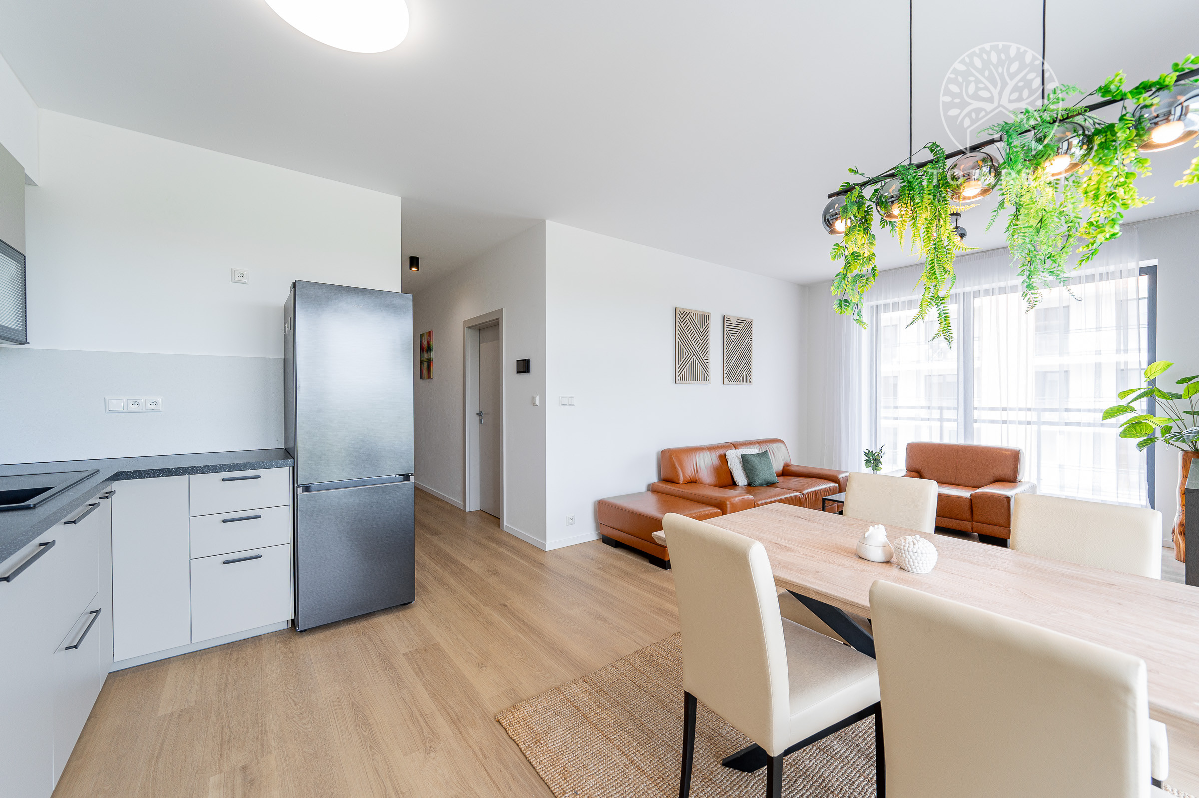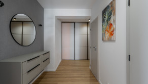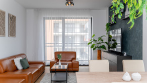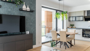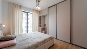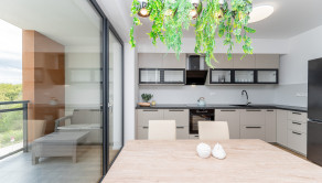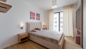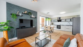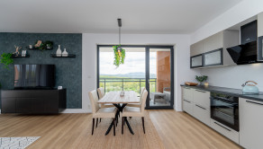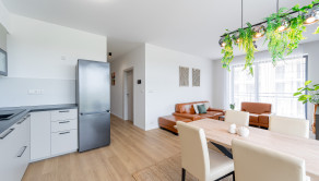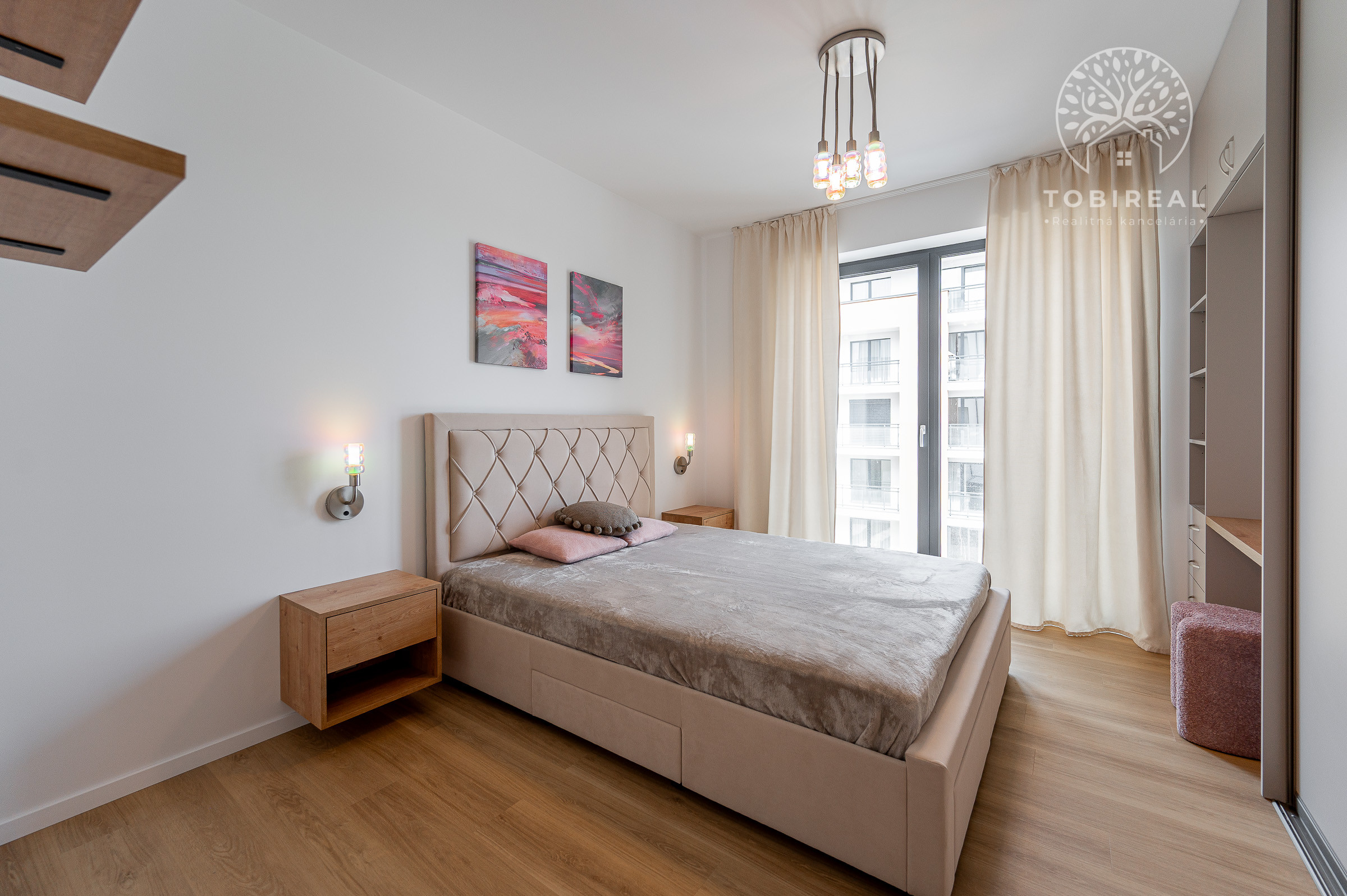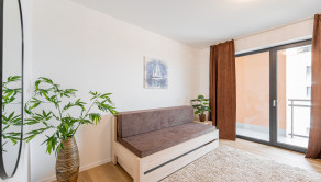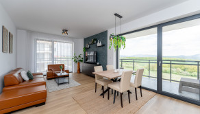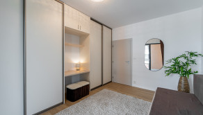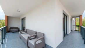 Tento moderný a vzdušný byt sa nachádza v novostavbe na 3. poschodí a disponuje úžitkovou plochou 84 m². Byt je orientovaný na východ, čo zabezpečuje príjemné presvetlenie počas dňa, a ponúka priestrannú loggiu s výhľadom na zeleň. Prenajíma sa kompletne zariadený a je ideálny pre klienta, ktorý hľadá nový, elegantný a komfortný domov. Dispozícia pozostáva zo vstupnej chodby, obývačky spojenej s kompletne zariadenou kuchyňou, dvoch samostatných spální, kúpeľne s vaňou aj sprchovacím kútom a samostatnej toalety. K prenájmu bytu prislúcha parkovacie miesto v garáži.